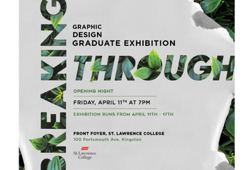 The St. Lawrence College Graphic Design program is proud to present the final portfolio works of the class of 2025 at the Graphic Design Graduate Exhibition "Breaking Through," from April 12-17 at SLC Kingston.  Pieces on display include the graduates' design work in brand identity, websites and mobile apps, packaging, print media, and social media campaigns. The exhibition poster was designed by soon-to-be graduate, Catherine Bourbonnais.