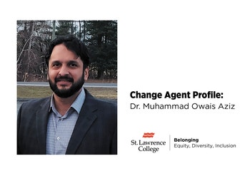 Dr. Muhammad Owais Aziz (he/him) is Professor of Health Sciences at St. Lawrence College, Cornwall. He is also a member of the College’s Equity, Diversity, and Inclusion (EDI) + Belonging Task Force. This is the third in a series of interviews profiling Task Force members who are considered change agents of the College. Change agents are individuals or groups that undertake the task of initiating and managing change in an organization.