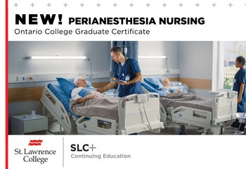 St. Lawrence College’s new specialty nursing program will provide Registered Nurses and Registered Practical Nurses with critical care training to expand their practice in perianesthesia nursing. The Perianesthesia Nursing graduate certificate program is delivered part-time online through SLC+ Continuing Education, providing a flexible learning opportunity for RNs and RPNs. The program will offer intakes in September, January, and May.