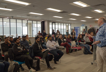 On March 26th, over 55 members of the SLC community came together for a “Redefining Leadership” event at the Innovation Hub. Organized by Student Success, this event offered students a unique opportunity to explore the nuances of leadership, differentiating between leading oneself and leading others. To open the talk, Emma Laporte, a Community and Justice Services student, shared her personal journey and how assuming leadership roles had positively impacted her academic and personal growth.