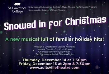 St. Lawrence College’s Music Theatre – Performance program invites the community to experience the energy of live theatrical performances at their upcoming production of Snowed in for Christmas, on stage at Aultsville Theatre, located on SLC’s Cornwall campus, December 14 & 15. Tickets are available from Aultsville Theatre.
