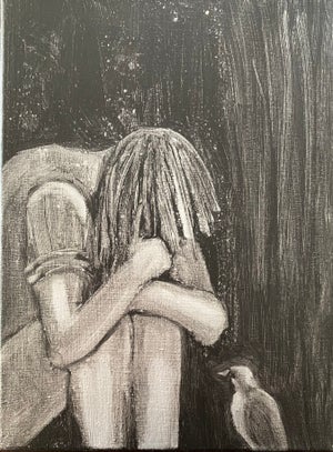 This piece is from the series I call Isolation Creation. I tried to express through the figure, how I felt with being in the COVID Lockdown.
