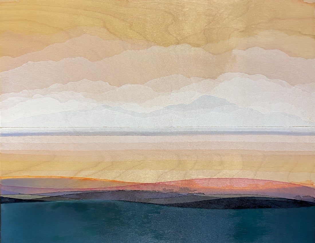 Adele Webster is a British/Canadian artist whose work has been exhibited nationally and internationally. With a background in graphic design and a unique acrylic wash process, she creates minimalist, dream-like landscapes inspired by nature’s horizons. Based in Kingston, Ontario, her award-winning work is represented in galleries across Canada and held in private collections worldwide.
