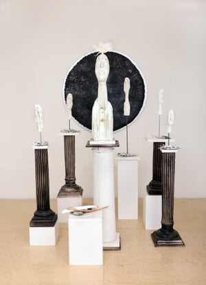 My current sculpture and painting practices explore installation experiences designed for the viewer to consider our human journey. With the past meeting the present through ancient artifacts and mythology, my work may suggest a way to navigate at this complex moment in time.