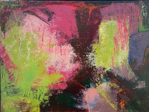 I start with a playful approach and work in a call and response manner. Sometimes the marks and colour choices are informed by thoughts or feelings I can identify in the moment, but more often meaning is later revealed. At some point, aesthetic concerns dominate and I move back and forth between intuition and analysis until the work feels resolved.