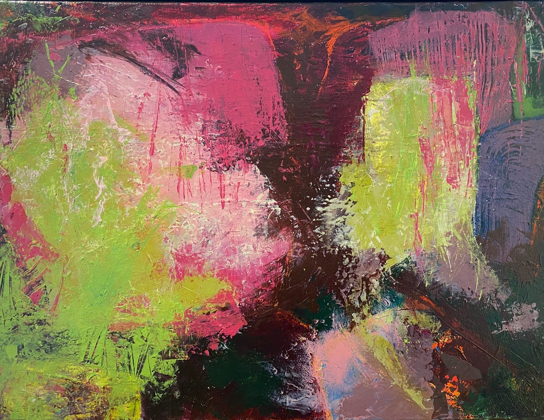 Patti Groome is an abstract/non-objective artist who relies on both the intuitive and analytic sides of her personality to explore her aesthetic. She primarily works with acrylics and uses non-traditional tools in an additive-subtractive, multi-layered process. She has a BFA and worked as a graphic artist before obtaining her PhD in Epidemiology and becoming a tenured professor at Queen's University. Patti has been joyfully devoting her energy to her art practice since she retired from Queen’s in 2021.