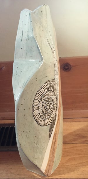 After ceramics training in Yorkshire England, Sue spent many years working as a professional functional potter largely defined by using the wheel. Moving to Kingston in 1990, she joined the Potters’ Guild and became President in 1993. As a member and past President of OKWA she felt encouraged to exhibit more sculptural pieces. Her latest work experiments in creating unusual handbuilt clay vessels as a background for displaying carved images. The first of this body of work was accepted into an Ontario-wide juried FUSION exhibition early in 2025 and was exhibited in Toronto, Kingston and Dundas.