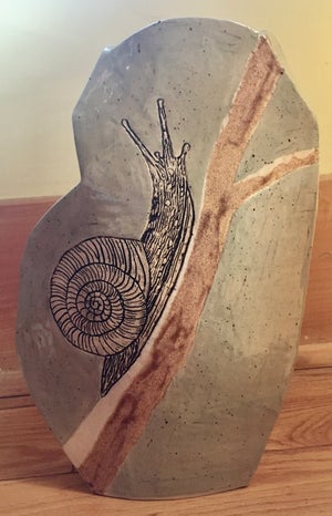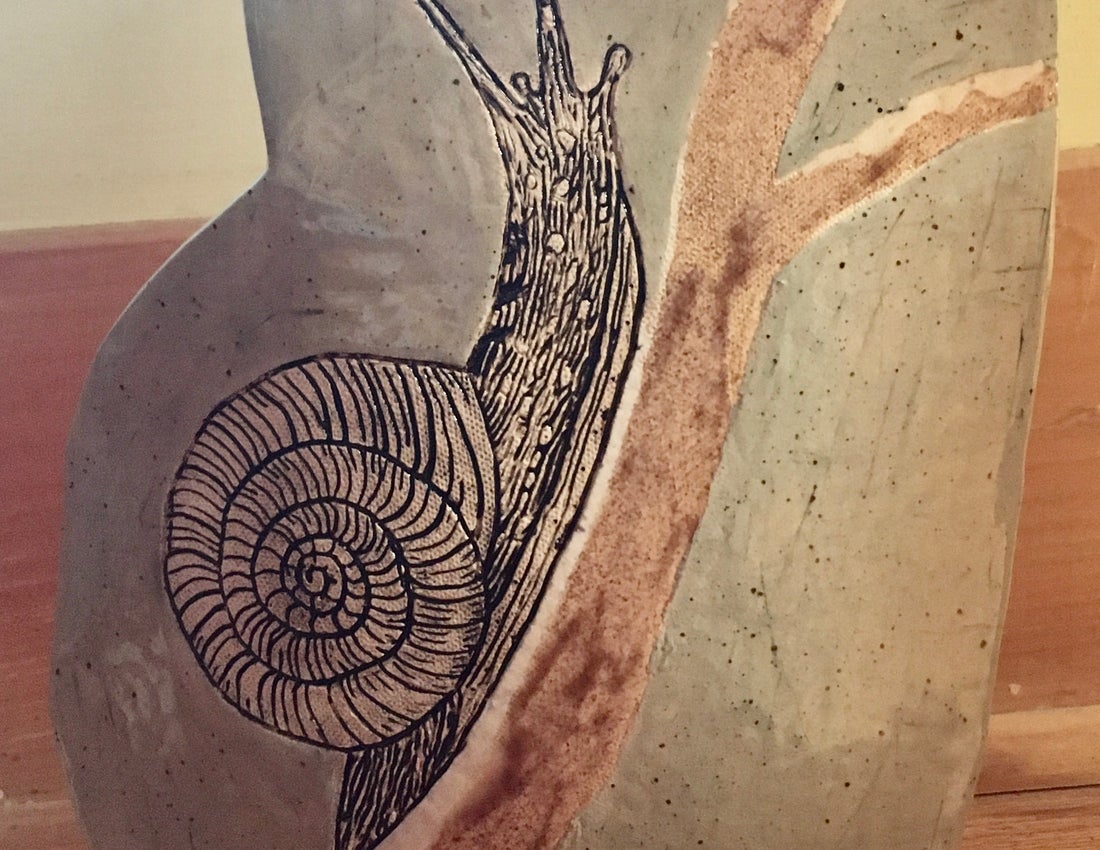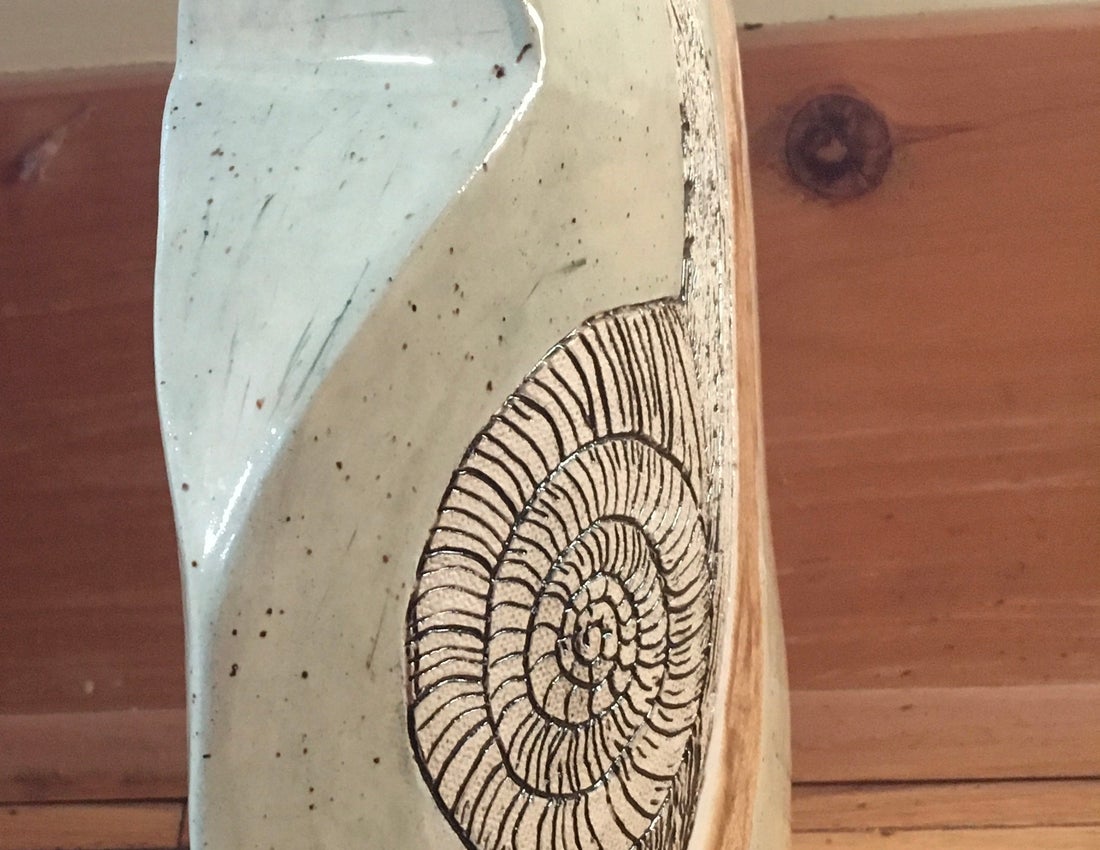 When I began learning about clay and pottery I started with varied hand building methods before progressing to efficiency on the wheel. Working on the anciently discovered potter's wheel I have produced many beautiful vessels of varied shapes and sizes but unless altered they were symmetrical and rounded. Returning to the off-wheel creations by taking a slab of clay and choosing a shape to outline a non-symmetrical creature gave me a different challenging experience and result. This has been the basis of my most recent body of work.