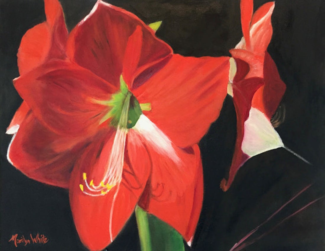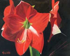 My amaryllis bloomed in January asking for its portrait to be painted. So I did.