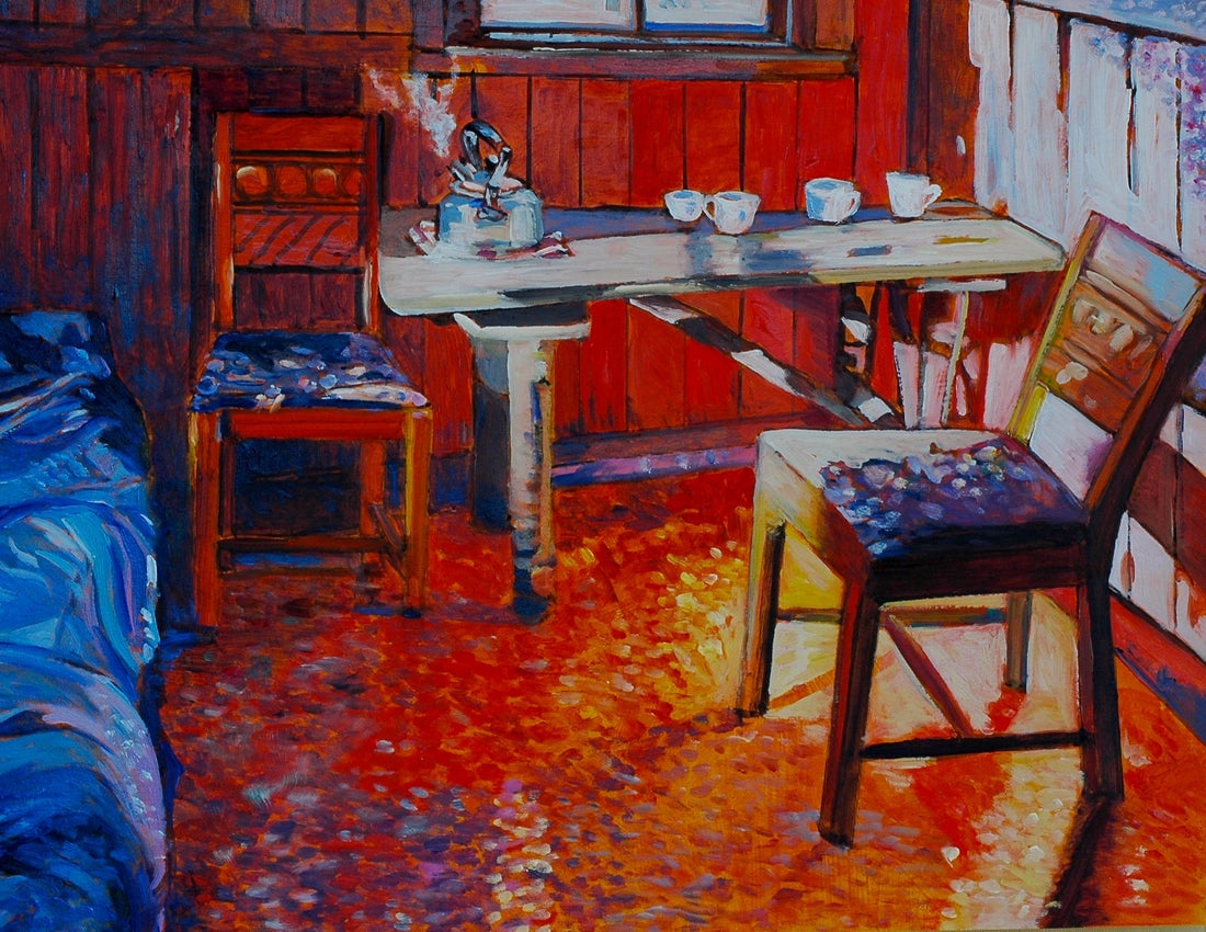 I stayed in this cabin years ago in Chicoutimi and wanted to capture the light remembered. My newfound method of drawing with a brush forces me to concentrate on the present moment and feel less anxious about the world. I hope me painting creates a gentle invitation to look at the beauty that surrounds us in the everyday.