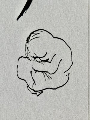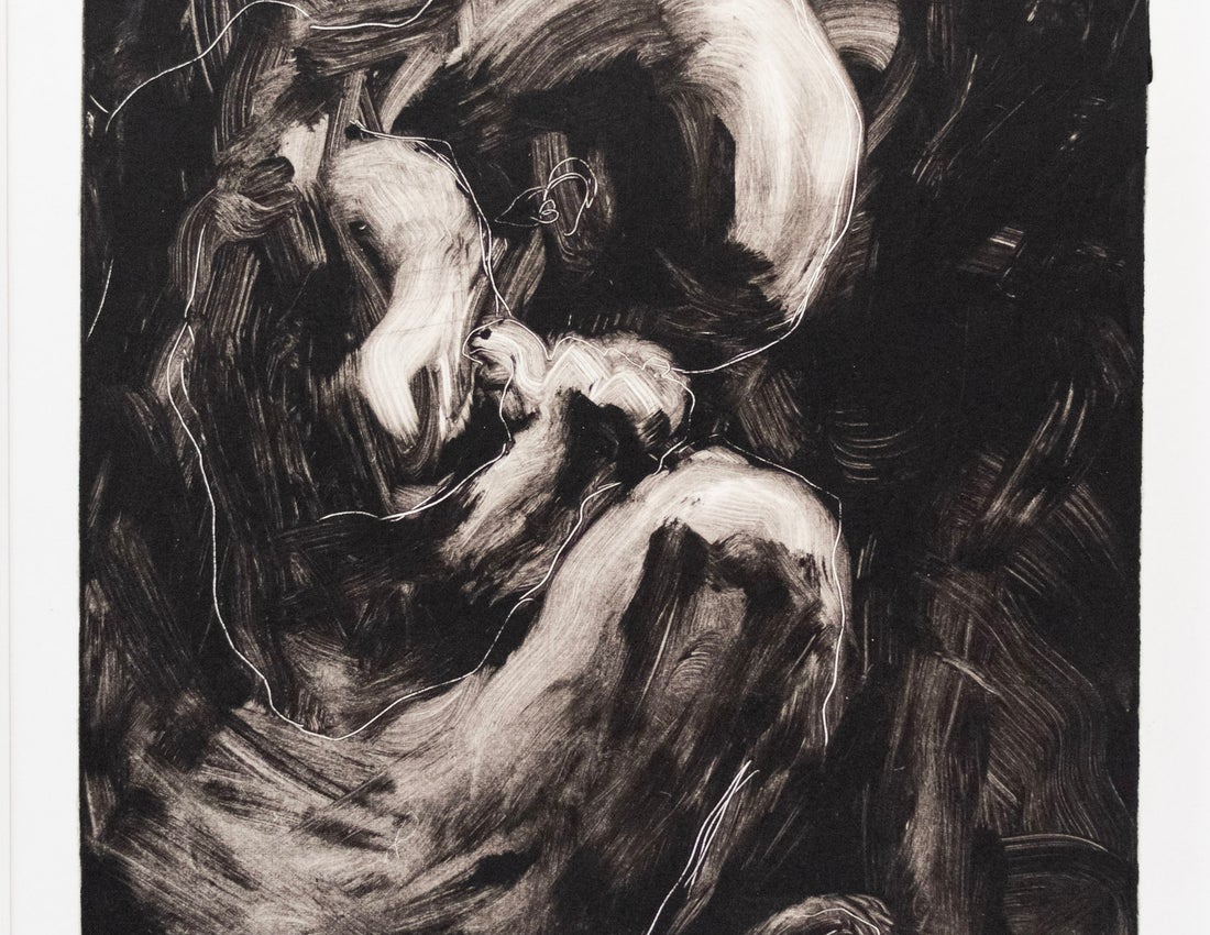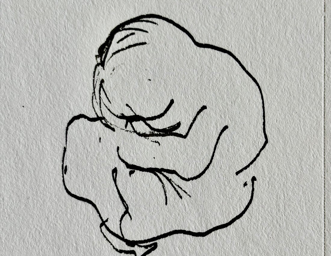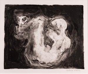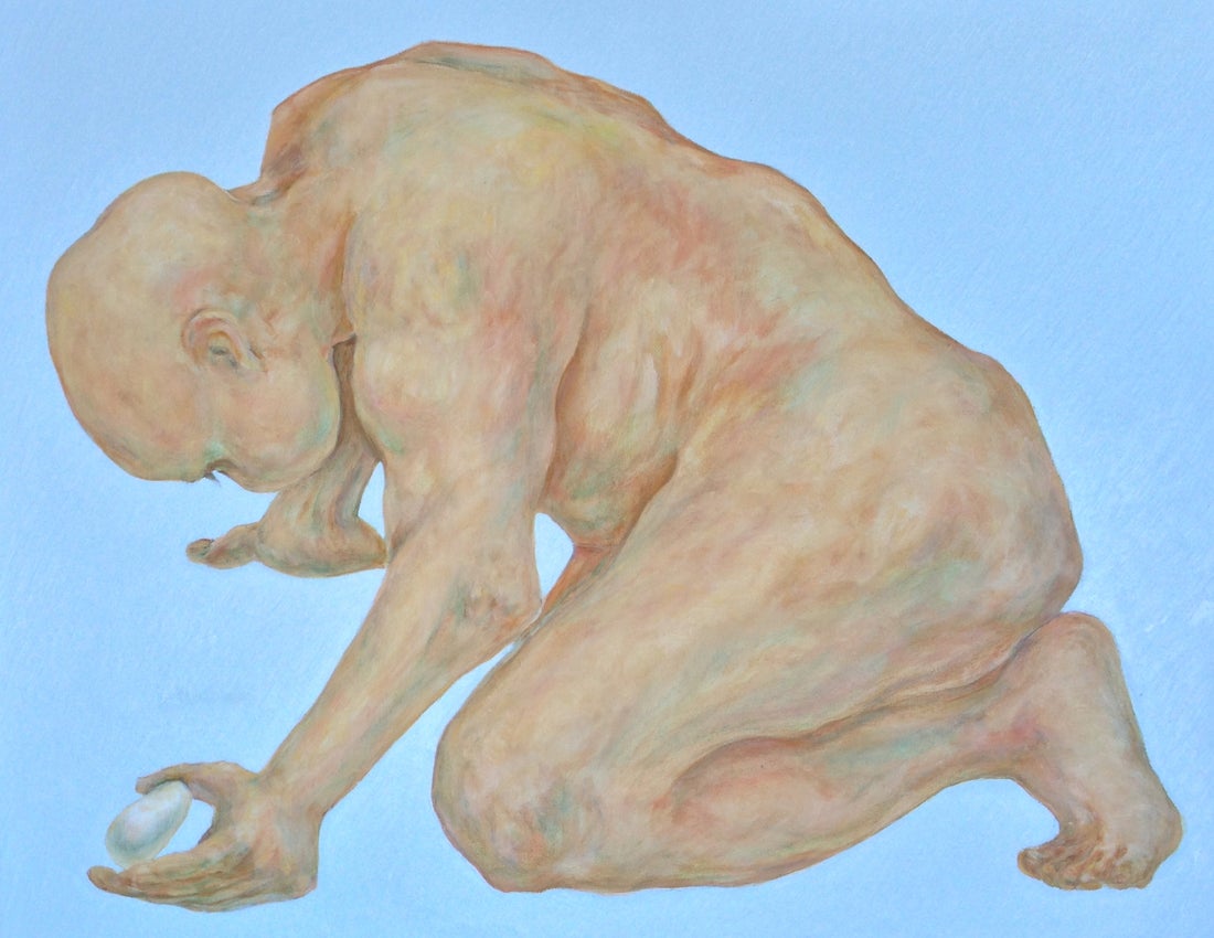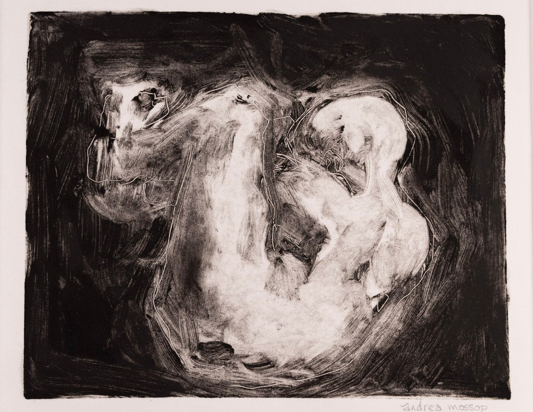 I think these images have always lived inside me, waiting for expression in their metaphoric power. After decades of teaching life drawing, The Womb Children, a name spontaneously scribbled into my working notes, came when I no longer worked from a model. Without a visual source, with my hand in motion, they poured themselves into drawings in ink, in pencil; they revealed themselves in the blackness of mono prints; they developed skins slowly in the long labour of oil painting. I felt a tremendous freedom when they were born. And more keep coming. Without reference for their being, they are self determining.
