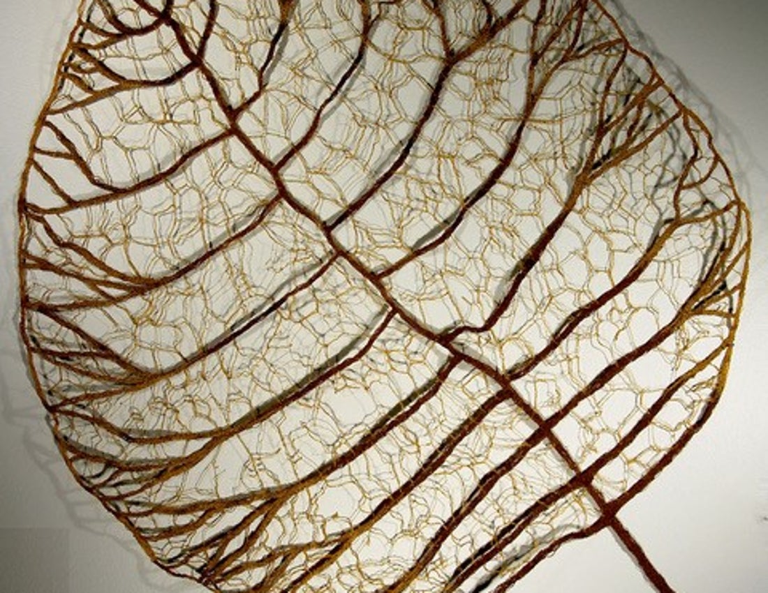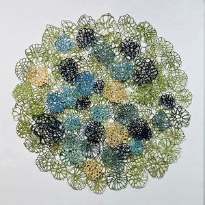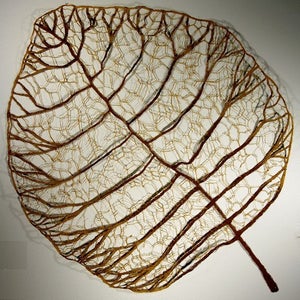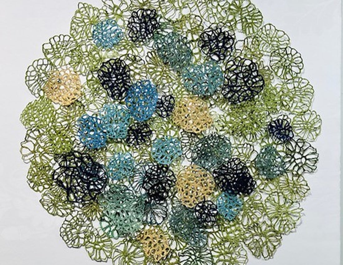 I am particularly drawn to the intricate details of organic forms found in nature such as lichen, leaves or tree bark. After sketching these objects, I machine embroider one of my drawings onto a dissolvable stabilizer, which eventually gets washed away. My other method is more abstract;