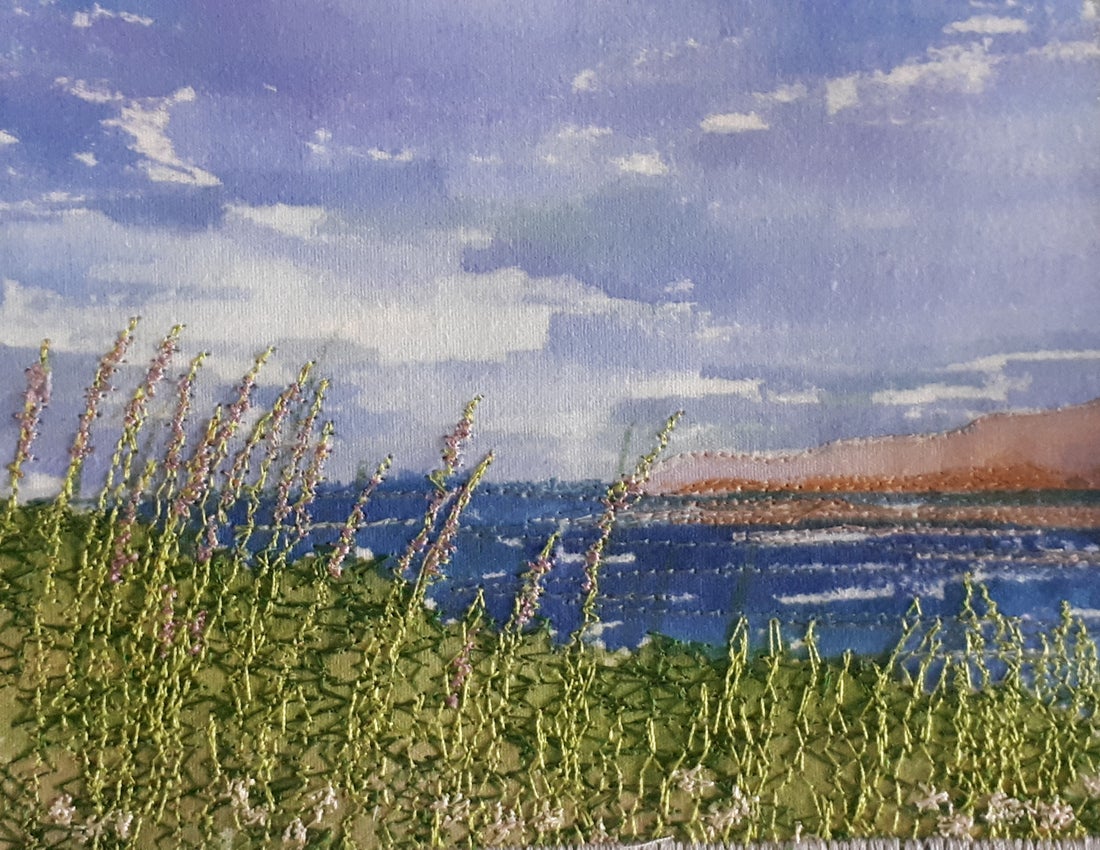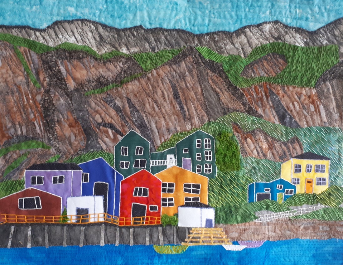 I credit my grandmothers with seeding my interest in textile art. My mother’s mother, a skilled needle woman, taught me to sew, embroider and crochet, while my father’s mother, a visual artist, encouraged my drawing and painting. Over the years, I continued to enjoy sewing clothing and taking classes in a variety of visual arts. My first encounter with fibre art, specifically free-motion embroidery or thread painting, occurred on a rural studio tour and it resonated immediately. Knowing I had to try it, I signed up for a course at St. Lawrence College and within a few sessions knew I’d found “my thing”, which happily, utilized the drawing, painting, sewing and quilting techniques (and accumulated materials) I’d been playing with for years.