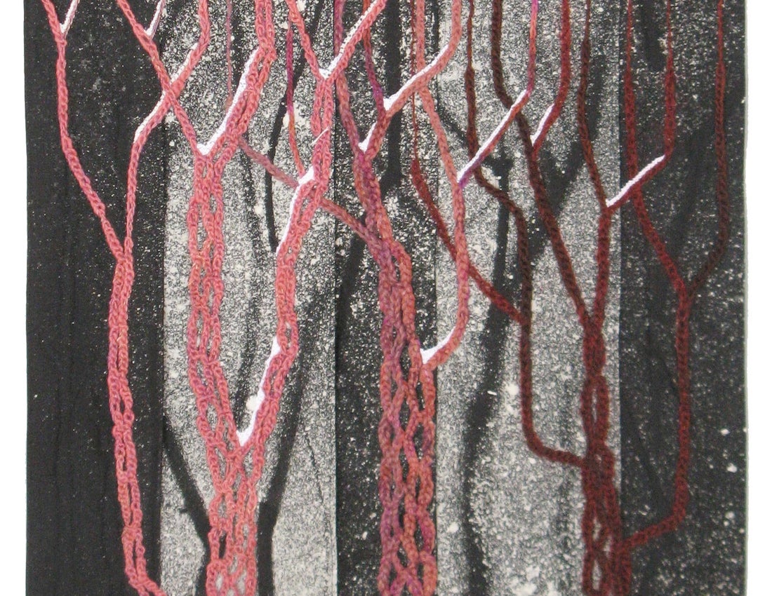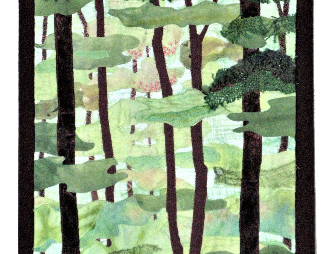 I chose fibre as my medium because of the variety of textures available to me. From the beginning I included hand woven wools and pleated organzas with the flatter cottons and silks. More recently my work has become increasingly three dimensional as I include hand stitching into my pieces and experiment with cheesecloth, batting and yarns.