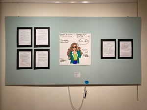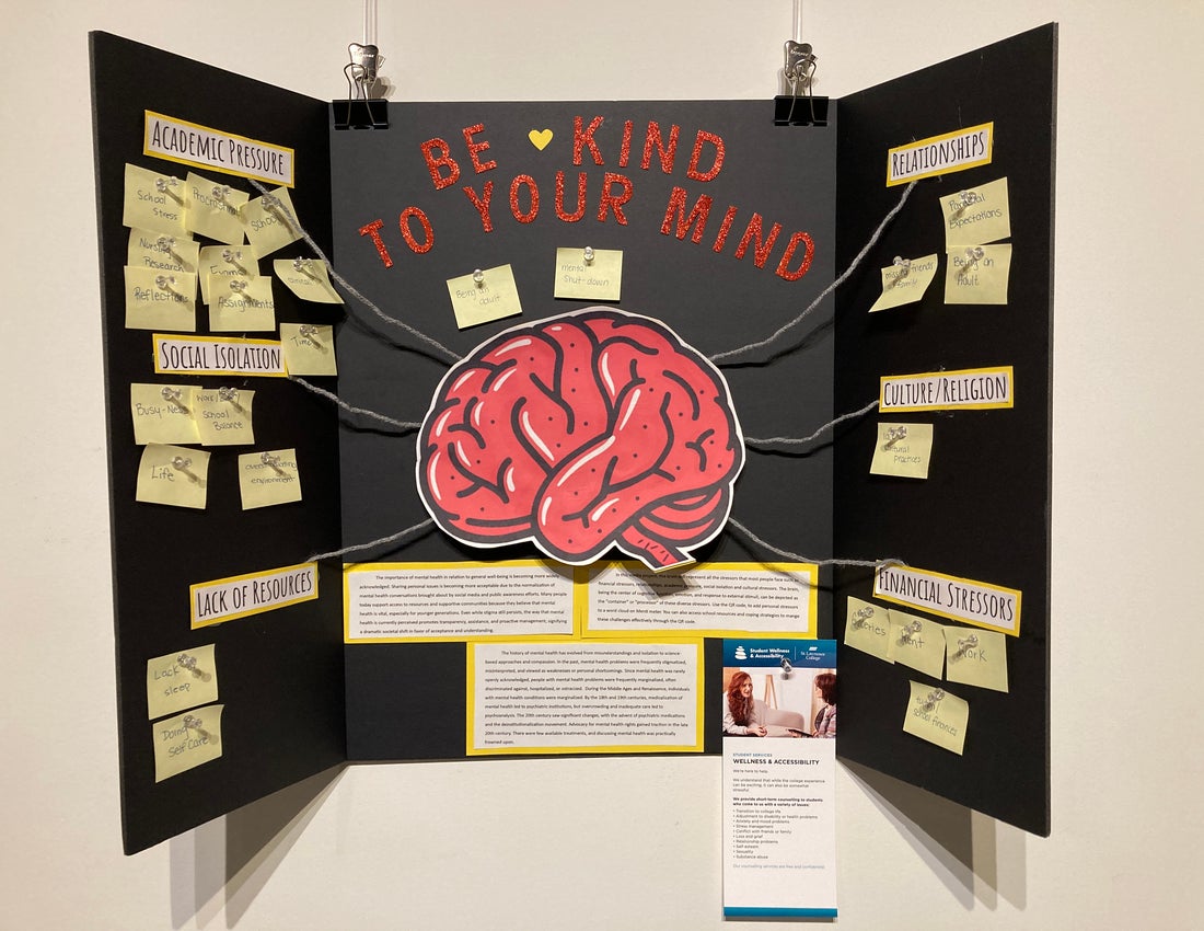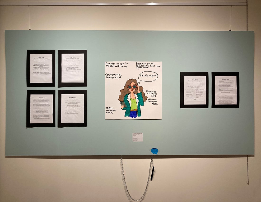 In the main gallery, 3rd year nursing students consider the impact of social media messaging on mental health. Their group projects demonstrate thoughtful engagement with current cultural practices or "conversations" around mental wellness, and critically reflect on these and the ways in which they may or may not support mental wellbeing.