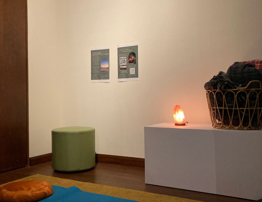The artist collective The FISHEAS (a local group of artists and researchers with shared ideologies and aesthetics who create work together) have collaborated with the ideas present and contributed 2 installations to provide interactive and calming experiences for visitors.