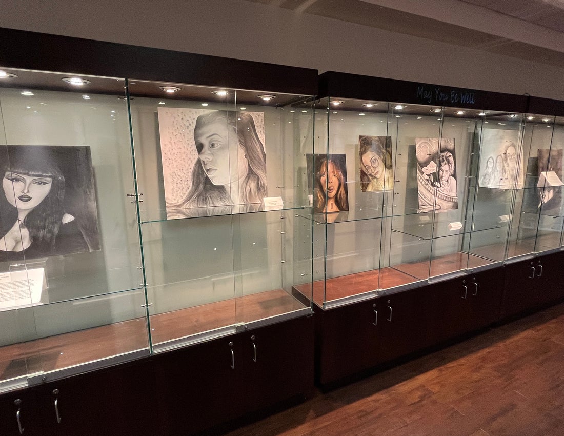 In the foyer cases, Fine Arts students have produced drawings and paintings that explore their relationships to social media and the power of photography to capture and share a personal moment through “Selfie Self-portraits”.