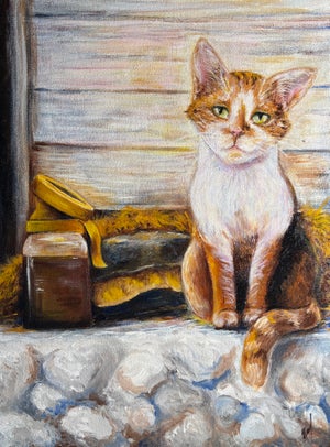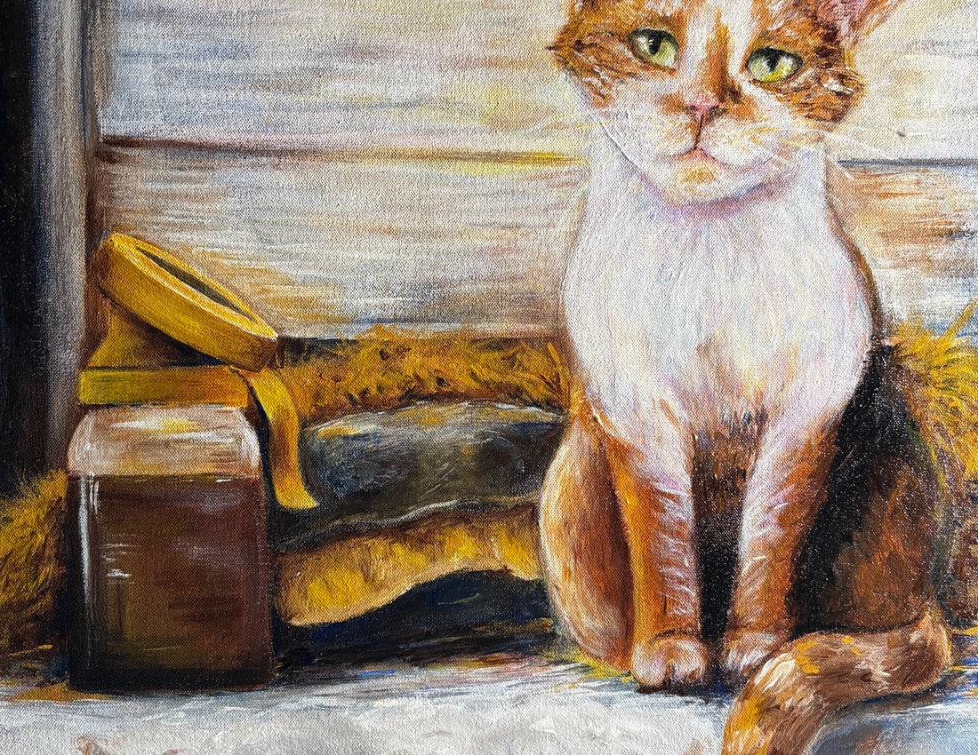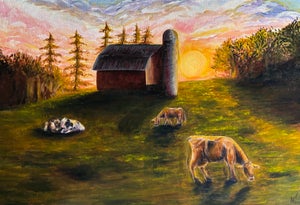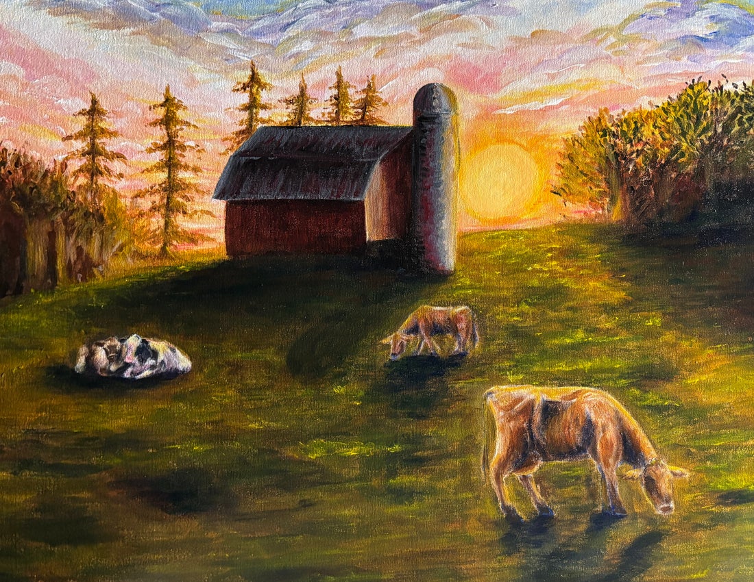 Morgan Huizenga’s art is shaped by her upbringing on a dairy farm in Belleville, ON. Passionate since childhood, she is due to graduate from the Fine Arts program St. Lawrence College in June. Working in acrylic and oils, she explores farm life, childhood memories, and women’s roles on farms in the early 1900s. She has exhibited her work at Centennial Secondary School and St. Lawrence College. Morgan aims to balance farming with an art career, specializing in farm animal portraits.