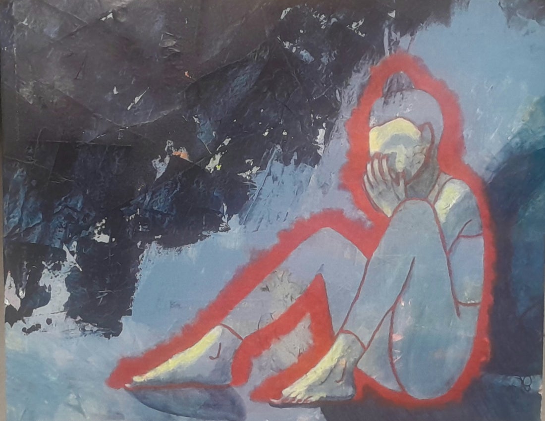 I am a mixed media artist, so I tend to incorporate any and all media in my art. My choices are intuitive; I select whatever materials feel right in the moment. I love to try new techniques and work with unusual colour palettes. I usually strive to create positive artwork that enhances wellbeing and happiness, but this year I feel the need to explore the darker feelings of lost opportunities and diminishing potential felt upon reaching middle age. I think it is necessary to confront these feelings to be able to accept current reality and the opportunities and potential that still remains.