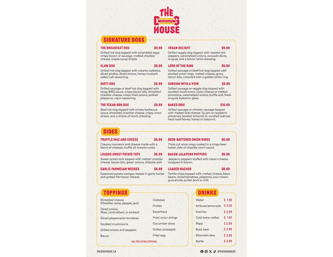 The goal of this project is to create a distinctive logo and menu that effectively communicates The Dog House’s unique brand personality, values, and offerings.