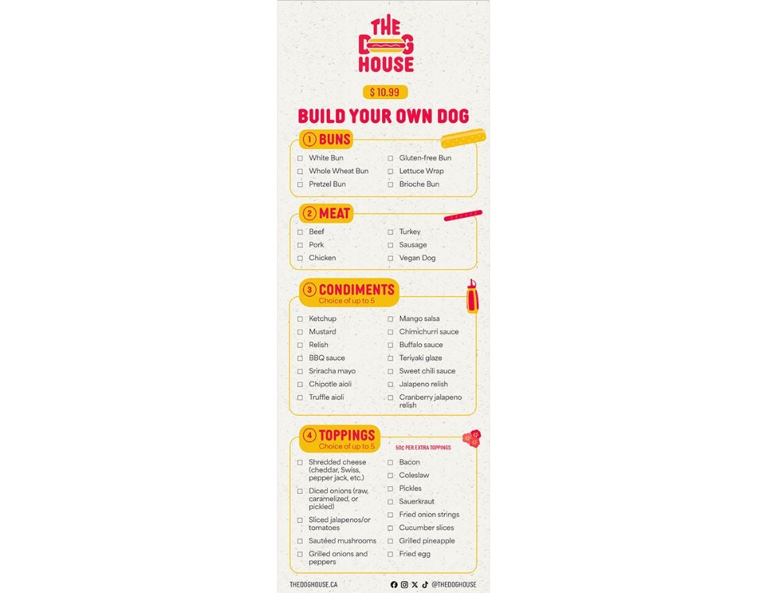 The Dog House is a bold and adventurous new food truck in downtown Kingston. Specializing in build-your-own chilli dogs, sausages, and creative gourmet hot dogs, the brand is designed to stand out in the competitive food scene with its quirky, fun-loving personality. With a constantly changing menu inspired by the owner’s bold and unconventional approach, The Dog House aims to attract local residents, tourists, students, and professionals looking for a unique and delicious dining experience.
