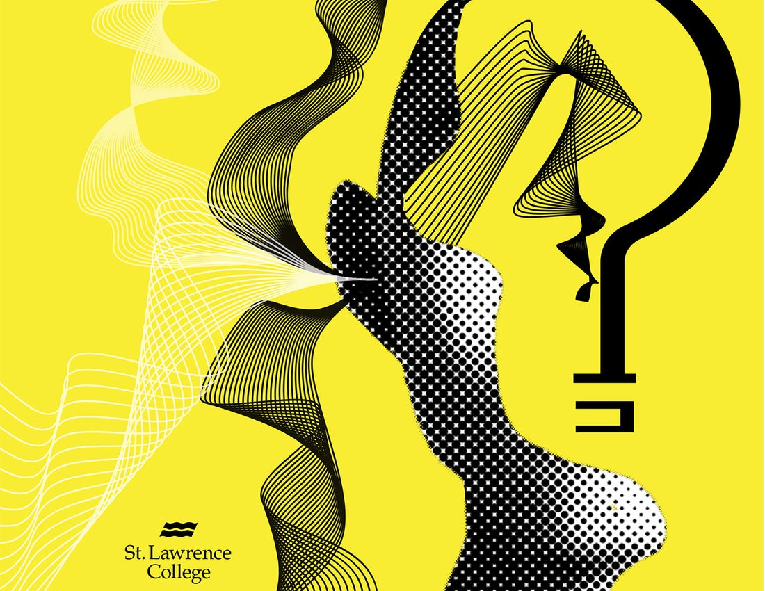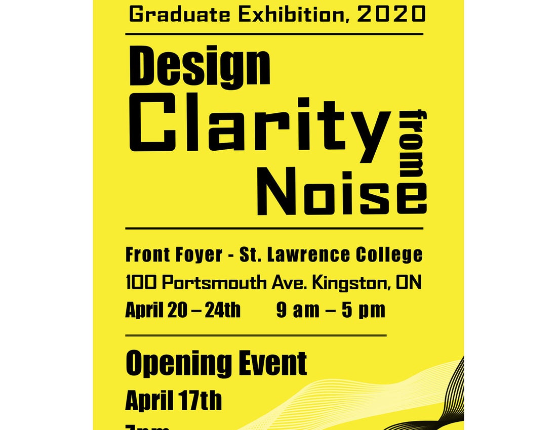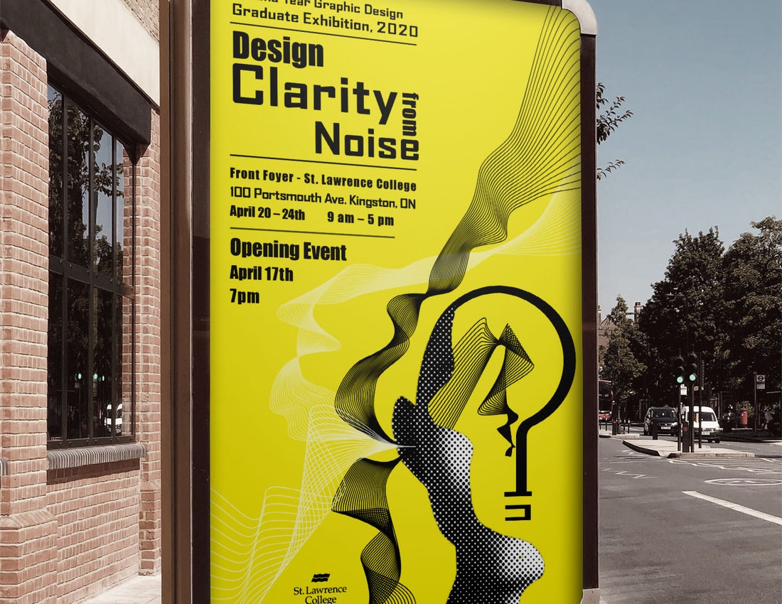 The advertisement is for the 2nd and 3rd year Graphic Design Program exhibition at St Lawrence College. The concept was built around the slogan “building clarity from noise.” The advertisement should communicate to the audience the details of the event and create intrigue.