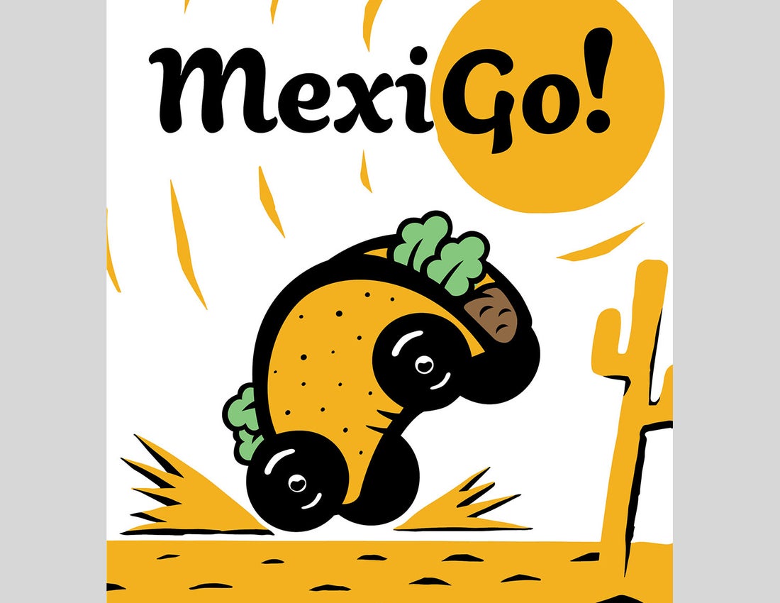 To best represent the ideals of the brand, I devised a fun and friendly logo that combined both an iconic Tex-Mex meal, as well as a sense of speed. The taco-car symbol was designed to evoke a sense of movement with its reared pose, and with its references to old cartoons in style, it sells the idea that the restaurant moves quickly. I chose an accompanying font that shared a similar illustrative nature and was equally playful to round out the logo.