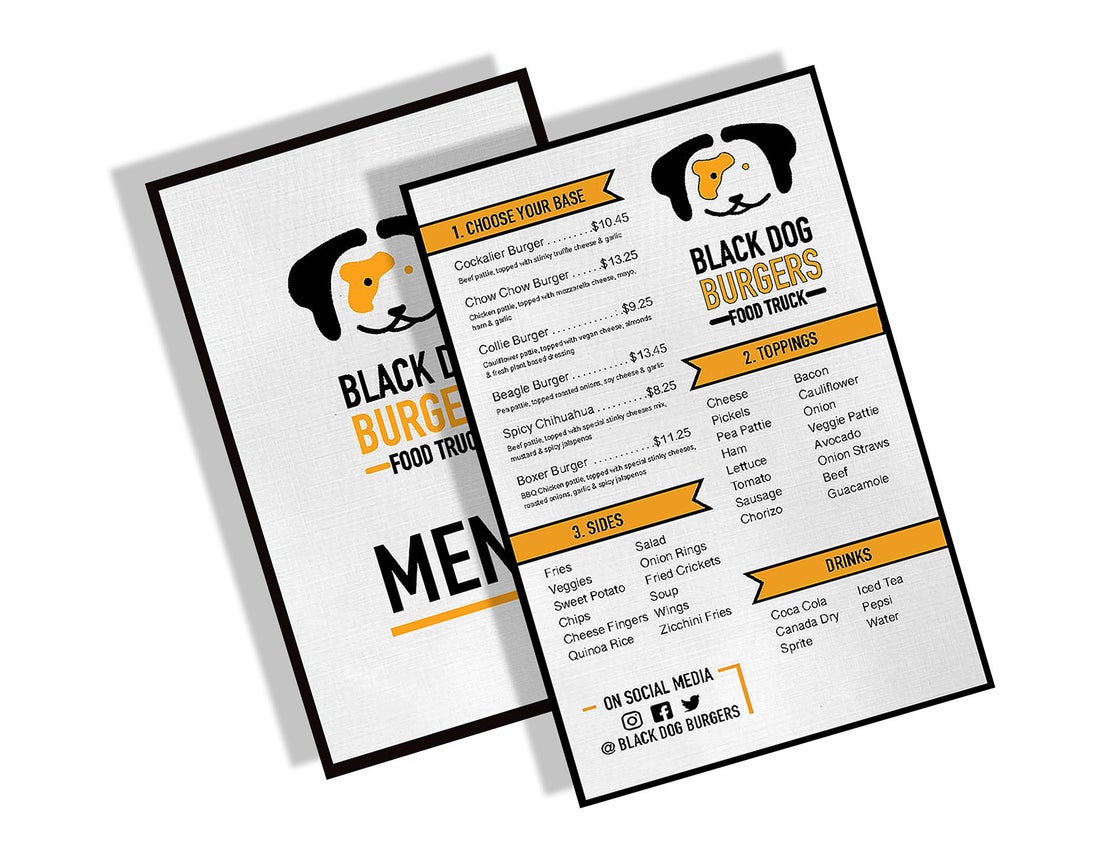 For this project, was required to elaborate a logo that represented the essence of the business name, the values and the product of the business. The concept of this logo was based on a visual representation of a dog by following the name of the business as a wordmark. This logo was intended to give a feeling of fast food by creating an effective design solution to be attractive and appealing for the consumers. Once having the logo identity developed, was essential to create a menu that represented the essence of the business and inform the consumers about the multiple food options and prices. The spread of this menu was developed to be a folded menu with the sizes of 7 x12” printed in CMYK.