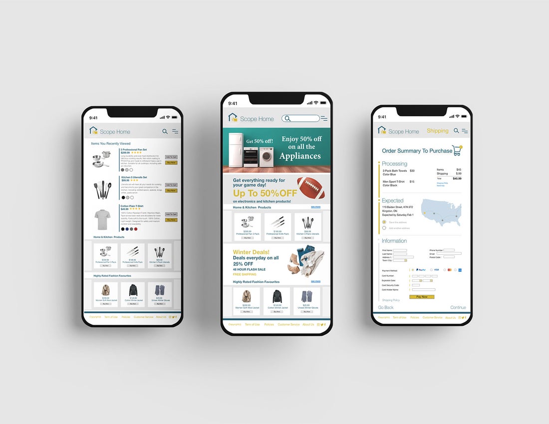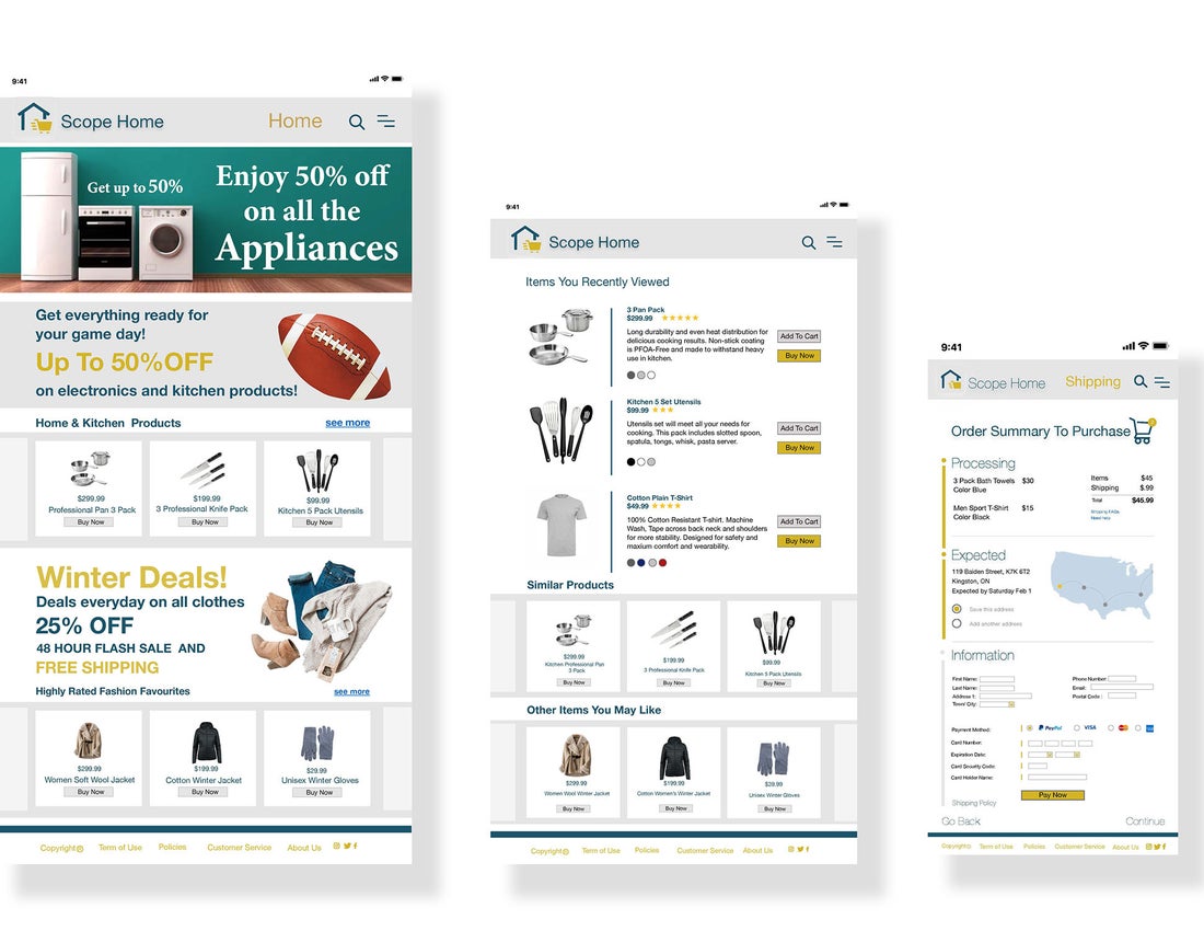 For this project was required to create an effective design for a e-commerce site. I decided to create this site based on a retail store where people would be able to find multiple products such as clothes, housing, outdoors and electronics. The primary target audience ranges from 30 to 50 years old. A large majority of this primary audience are people who own a family, looking for products for their home and family. The goal was to improve the usability with customers and give an appealing view of the products on multiple platforms. When developing this design the typography helped me to organize information on different sections depending on their relevance. The implemented typefaces were Helvetica Neue and Minion Pro. It was essential to follow with the web-safe fonts using the appropriate sizes and weights to achieve good visibility and provide accessible content for customers.
