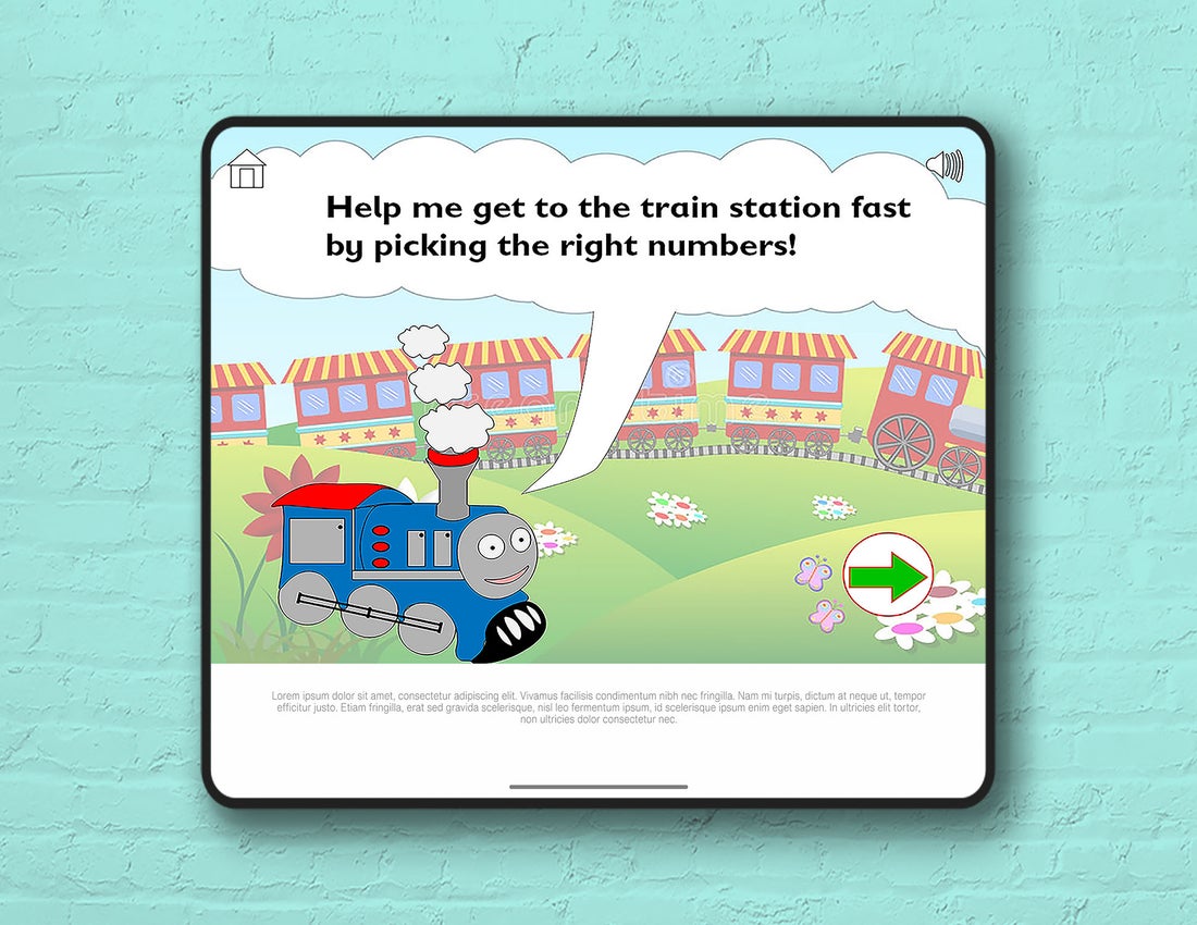 The game that I am showcasing out of the three for the assignment is the train math game. A train avatar for the game guides children along, keeping them engaged and on task throughout the entire process. Very colourful and clear animations were used to help kids stay interested in the game while still being educational. There are many rewards for children who complete the games, as well as small animations of confetti and balloons when they get questions right. Overall, I created a fun yet educational game for young children.