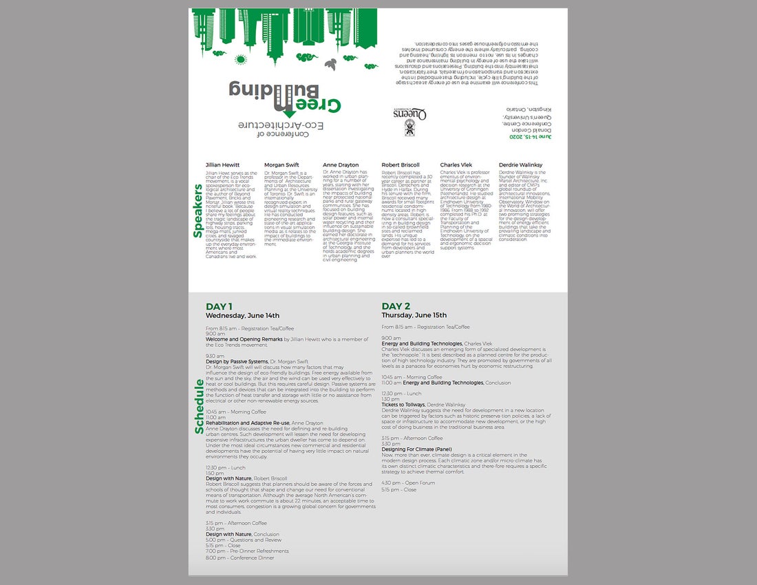 The second part is the booklet, in which we add the different speeches of different sponsors to make the people aware for this conference and attending their speeches. Creating the booklet part is more fun in this project. I used the same cluster and concept of green building to show that it is a part of the same project. The layout is simple, colour has the great visibility, and typography work is easy to read.