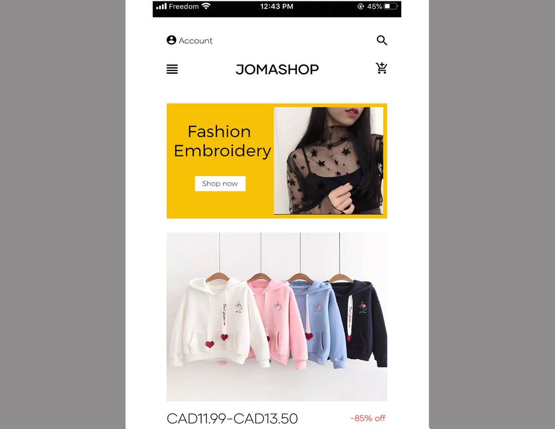 For this project, we have to create the three pages of a website: home page, product age and shipping page. They also had to come in three different sizes: desktop, tablet and phone. I chose to work with Jomashop website which is selling the products like shoes, watches, and other accessories, so I tried to make this website for selling clothes. I create a simple layout design, great colour contrast where I chose yellow colour for highlighting the promotions section.