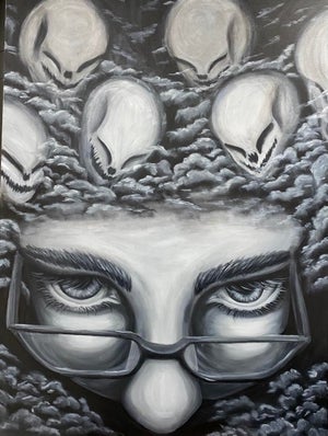 Canadian artist Abbygale Ainsley is best known for works in mixed-media, portraiture, and figurative paintings. Motivated by the Impressionism, Post-Impressionism as well as Pop art movements, Abbygale’s artwork consists of a variety of colours on canvas as well as grey scale when it comes to drawing pieces. She focuses on movement, colour, and placement of objects when it come to creating them. Her series, The Anxious Mind (2023), shows exactly the range and values she commits to. She has devoted herself to creating and furthering her knowledge about pop culture and what can be created when influenced by it. In addition, she has started practicing abstract artworks.