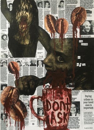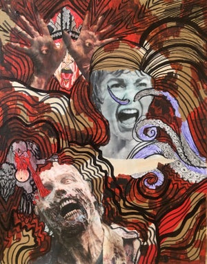 Anne Taylor is a mixed media artist who works largely with charcoal, drawing mediums and acrylic paint. She explores themes of death, horror, fiction, surrealism and social and political injustices. She takes inspiration from Felix Dolah, Zdzisław Beksński and Maxime Taccardi, as well as other artists who take comfort in lurid and macabre concepts. Their art and designs can be found in tattoos, clothing, canvas, paper and more. She hopes to create art that not only terrifies, but also influences people to see the world differently.