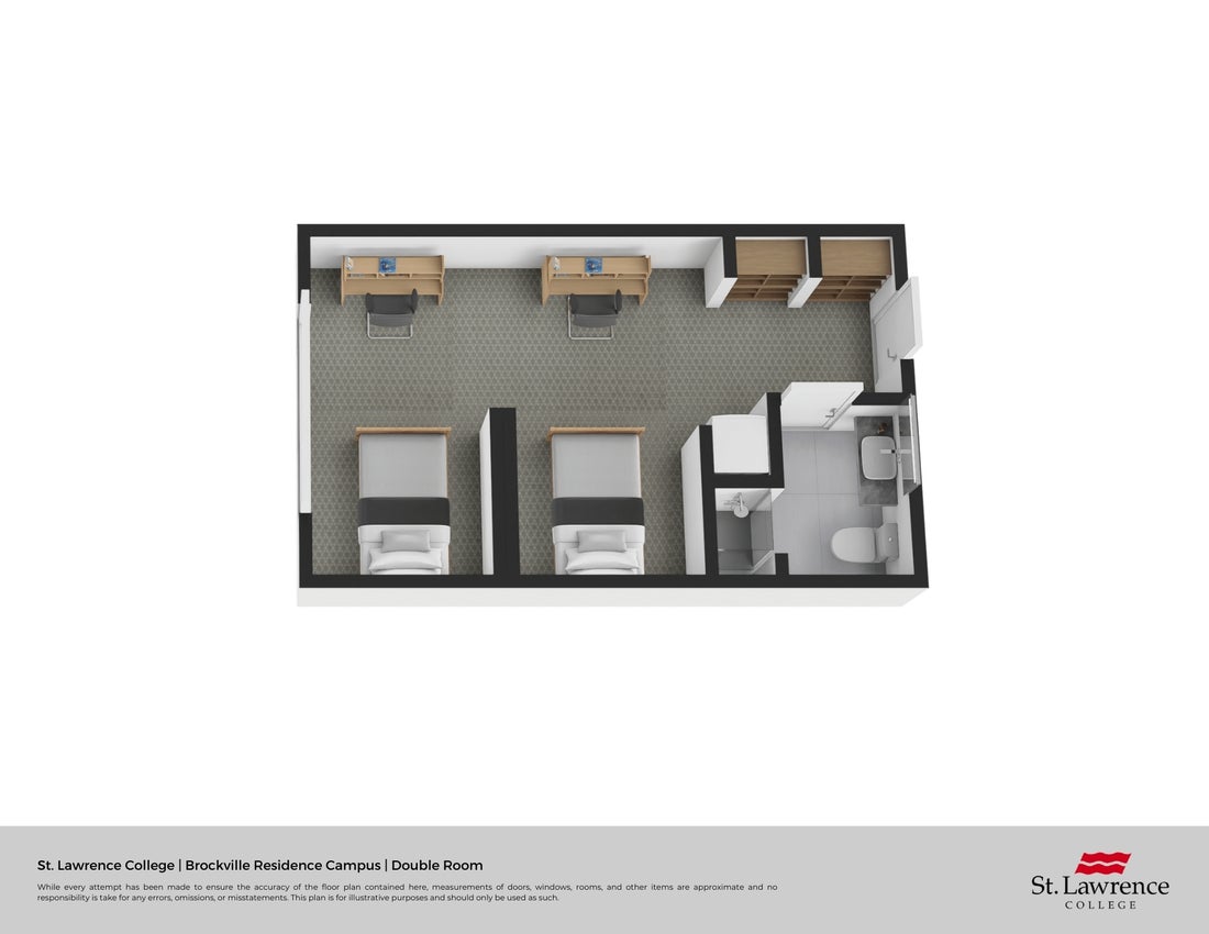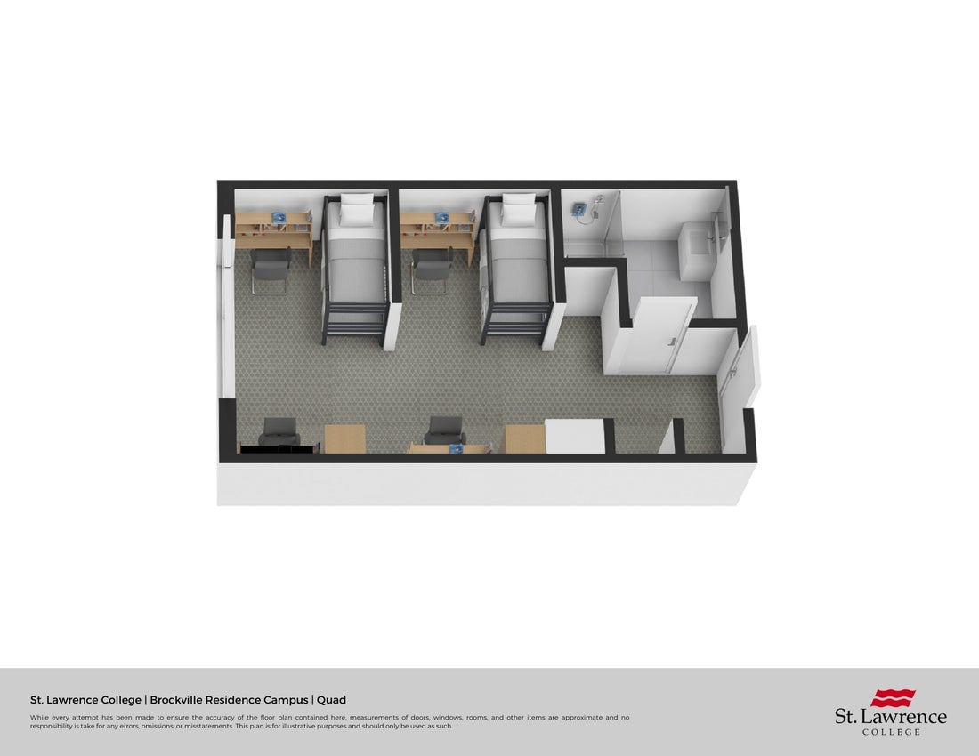 Our Brockville residence has fully furnished double and quadruple occupancy suites with full three-piece washrooms. There are accessible suites available for students with special accommodation requests.